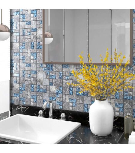 VIDAXL - Piastrelle Mosaico 22 pz Grigio e Blu 30x30 cm in Vetro