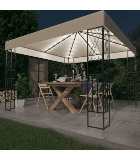 VIDAXL Gazebo con Stringa di Luci led 3x3 m in Tessuto Crema -