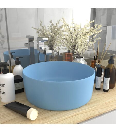 VIDAXL Lavandino Lusso Rotondo Azzurro Opaco 40x15 cm in Ceramica -