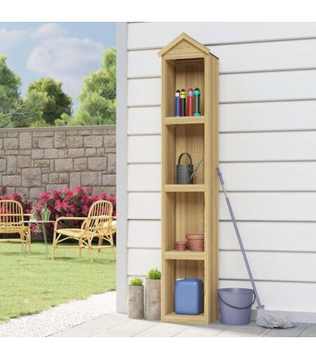 Il vostro garage è strapieno di attrezzi da giardino, attrezzature per il prato o altri oggetti essenziali per la casa? Questo capanno in legno è la scelta ideale per le vostre esigenze. Realizzato in legno di pino impregnato di qualità, questo capannone è estremamente durevole e resistente agli agenti atmosferici. Il tetto è ricoperto di bitume, che protegge il capannone dall'umidità. Il capanno include 4 grandi ripiani aperti in modo da poter riporre annaffiatoi, rastrelli, pale o altri attrezzi da giardino, così come altri oggetti e tenerli ordinati e organizzati. Materiale: Legno di pino, impregnato verde Dimensioni: 40 x 33 x 222 cm (L x P x A) Con 4 ripiani aperti Assemblaggio richiesto: Sì ATTENZIONE : Per evitare il ribaltamento questo prodotto deve essere utilizzato con il dispositivo di fissaggio a parete fornito. Legal Documents: Maggiori dettagli su come evitare il rovesciamento dei mobili sono disponibili qui ...