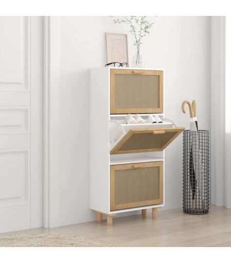 VIDAXL Scarpiera Bianca52x25x115cm Legno Multistrato e Rattan Naturale -