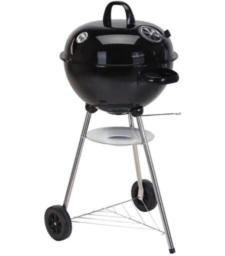 Barbecue sferico con finitura in smalto nero, ø47 x 90 cm, spessore 0,7 mm, altezza di cottura of 75 cm, griglia of cromata ø435 mm, spessore del filo 3,0/4,0 mm, gambe in tubo d'acciaio inox ø22 mm, termometro celsius nel coperchio, apertura di ventilazione regolabile of con 2 ruote per una facile mobilità ...