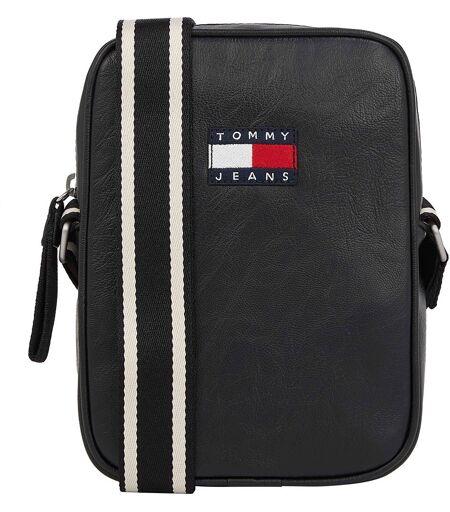 Borsa a tracolla da uomo di colore nero, realizzata in materiale resistente con un design semplice.La borsa presenta il logo Tommy Jeans applicato sul davanti e una tracolla nera con una striscia bianca a contrasto.Composizione:100% Poliuretano. ...