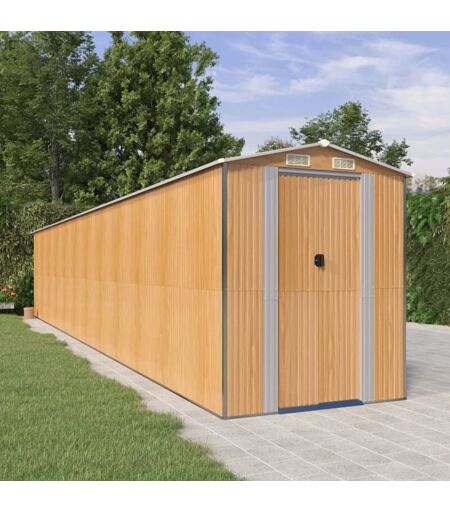 Questo capanno da giardino indispensabile è un'ottima soluzione di archiviazione per esterni dove riporre articoli come gli strumenti da esterno, gli oggetti essenziali per la piscina, gli attrezzi da giardino, e attrezzature simili. Materiale durevole: Il capanno per gli attrezzi da giardino è realizzato in acciaio zincato, che è durevole e non è soggetto a corrosione o a condizioni meteorologiche avverse. Ampio spazio portaoggetti: Il capanno portaoggetti è sorprendentemente spazioso, per consentire la conservazione di vari attrezzi, mobili da giardino e attrezzature. Design pratico: Questa casetta di conservazione dispone di prese d'aria anteriori e posteriori, per garantire un'ottima ventilazione. Le doppie porte scorrevoli consentono di entrare e uscire facilmente. Nota: Ciascun prodotto viene fornito con un manuale di assemblaggio nella confezione per un facile montaggio. Colore: Marrone chiaro Materiale: Acciaio zincato Dimensioni complessive: 192 x 1021 x 223 cm (L x L x A) ...