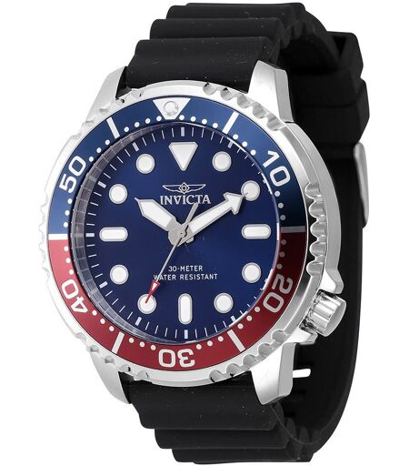 INFORMAZIONI GENERALI.Collezione:Invicta Quartz.Modello:Pro Diver.TARGET:Uomo.Casual.Adulto.MOVIMENTO E CARATTERISTICHE:SEIKO.PC21.Quarzo.Analogico.CASSA:Acciaio inossidabile.Grigio argento.Spessore 12mm.Diametro 48mm.CINTURINO/BRACCIALE:Silicone.Nero.Larghezza 22mm.Lunghezza 22cm.QUADRANTE:Blu.Ottone. ...