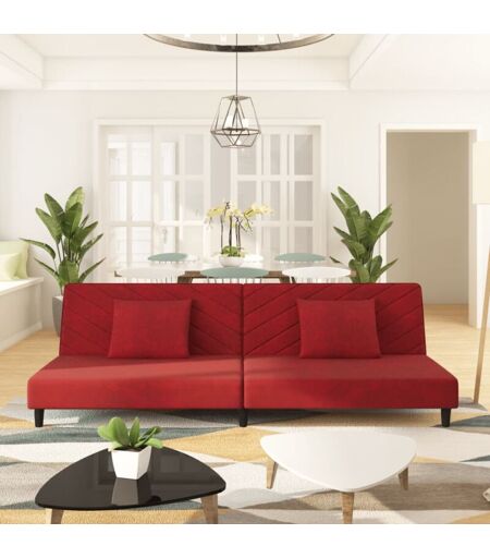 VIDAXL - Divano Letto a 2 Posti con 2 Cuscini Rosso Vino in Velluto