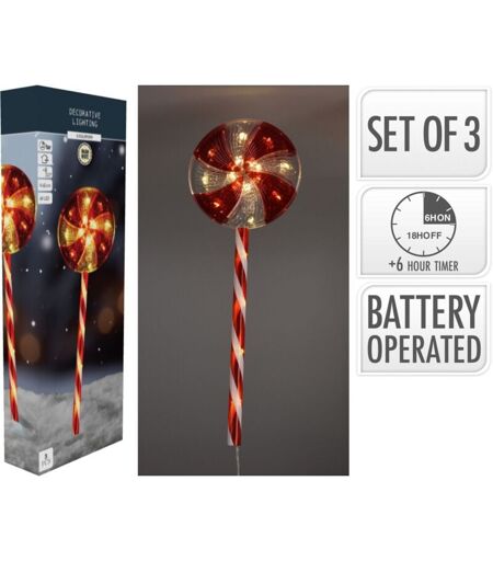 Set di 3 lecca-lecca decorativi a LED, altezza 62 cm, con 60 LED a luce bianco caldo ...