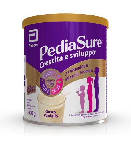 Pediasure Crescita&Sviluppo Vaniglia 400g è un integratore alimentare completo e bilanciato, ricco di proteine, vitamine e minerali, pensato per supportare la crescita e lo sviluppo dei bambini dai 3 ai 10 anni. ...