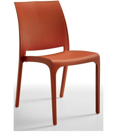 Sedia impilabile in polipropilene e fibra di vetro con tappi antiscivolo. Ideale per uso interno ed esterno. Misura: 54cm di profondità, 46cm di larghezza e 80cm di altezza. ...