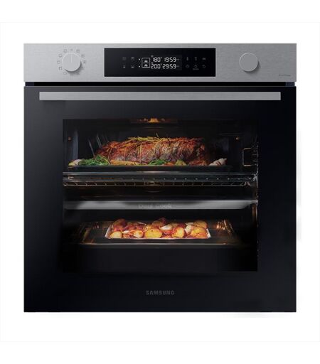 Forno elettrico - Classe energetica A+ - Volume 76 Lt - 40 funzioni - Forno con pulizia ad elementi catalitici - Programmazione fine cottura - WiFi - Controllo Vocale Assistente vocale Bixby / (Google, Alexa) Sicurezza Sovratensioni - Vapore naturale - Lampada Interna 25W / 40W (Alogena) Posizione Lampada Interna Superiore / Laterale Altezza Display 85mm Display LED Tipologia Doppia Manopola - Forno Samsung Dual Cook Serie 4, per cuocere contemporaneamente con tempi e impostazioni diverse senza scambio di odori. Gestione da remoto tramite WiFi e oltre 1000 ricette consultabili tramite app SmartThings Cooking. Vapore naturale per aggiungere umidità alle preparazioni e garantire risultati impeccabili nella preparazione di dolci, pane e arrosti. Cottura professionale sous vide per risultati da chef. Ecopulizia automatica catalisi. Finitura in acciaio. ...