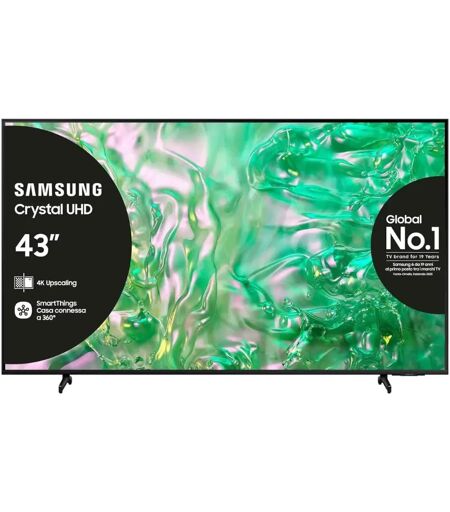Samsung Smart TV 43" UE43DU8070UXZT, Crystal UHD 4K, 4K Upscaling, Airslim Design, DVBT-2, Q-Symphony & Adaptive Sound, Integrato con Bixby, comp con Alexa e Google Assistant, Black 2024 [Classe di