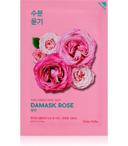 Holika Holika Pure Essence Damask Rose maschera in tessuto idratante e rivitalizzante 20 ml