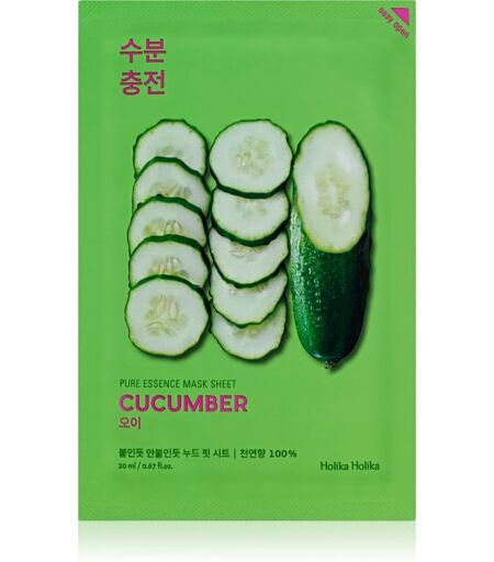 Holika Holika Pure Essence Cucumber maschera in tessuto lenitiva per pelli sensibili con tendenza all'arrossamento 23 ml