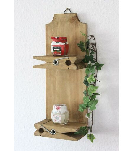 Mensola a muro appendiabiti molto divertente e decorativa. Realizzata in legno. Con 2 ripiani. Dimensioni: altezza circa 39,5 cm, larghezza circa 14,5 cm, profondità circa 9 cm. Ripiani: L 14,5 cm, P 8 cm. ...