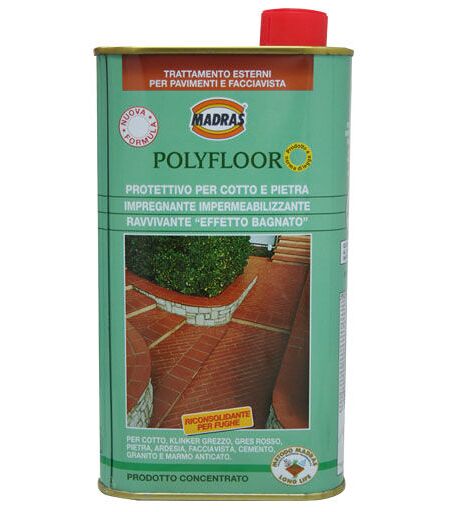 Madras POLYFLOOR Protettivo impermeabilizzante Impermeabilizzante ed idrorepellente Conferisce buona protezione alle superfici Madras POLYFLOOR Protettivo impermeabilizzante è un PROTETTIVO PER COTTO E PIETRA IMPREGNANTE IMPERMEABILIZZANTE RAVVIVANTE "EFFETTO BAGNATO" POLYFLOOR è un protettivo impregnante impermeabilizzante idrorepellente particolarmente adatto per la finitura di superfici in cotto, mattoni facciavista, pietra, cemento ed altri materiali edili porosi posti all’esterno e precedentemente protetti con 1AS IDROREPELLENTE o 1AF FACCIAVISTA. Il prodotto può essere applicato sia in orizzontale che in verticale e non altera le caratteristiche visive del supporto, ma dona un effetto ravvivante e tonalizzante. POLYFLOOR è un prodotto monocomponente e per questo consente la migliore impermeabilizzazione senza ridurre eccessivamente la traspirazione delle superfici. Come riconsolidante conferisce alle superfici trattate una buona protezione (soprattutto per le fughe di cemento) e ...
