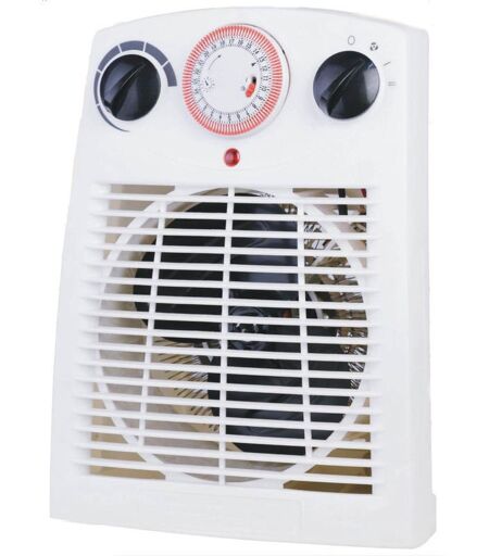 STUFA ELETTRICA CON TIMER E TERMOSTATO Corpo in plastica antiurto - 3 selezioni: I ventilazione - II 1000W - III 2000W - Termostato ambiente - Spia accensione 12X23X27 CM ...