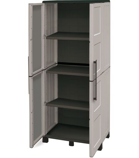 ARMADIO CON RIPIANI IN RESINA Marca 'ARTPLAST - MADE IN ITALY Armadio in resina con 2 ante battenti - Facile da montare - Non teme l'umidità - Adatto per ambienti esterni DIMENSIONI: profondità37xlarghezza68x1690H cm. - COLORE GRIGIO CHIARO - Questa linea è ideale per offerte promozionali. I ripiani, regolabili in altezza, consentono un’ottimizzazione degli spazi all’interno del mobile. Caratteristiche principali: sistema antiusura con cerniere in acciaio che garantiscono una chiusura a scatto; prodotti in polipropilene, materiale antiurto, resistente al freddo, alle intemperie, agli oli e ai solventi; lavabili, non assorbono odori e non trattengono l’umidità; semplice sistema di assemblaggio; dotati di piedini per facilitare la pulizia del pavimento sottostante; ripiani interni regolabili in altezza; la maniglia verticale offre una comoda presa per l’apertura delle ante; il piano superiore copre il bordo dell’anta, per una migliore tenuta contro le infiltrazioni dell’acqua; packaging ...