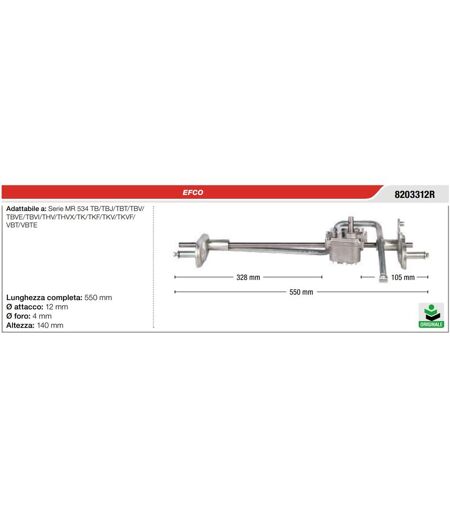 TRASMISSIONE TRAZIONE SEMOVENZA PER RASAERBA TOSAERBA SERIE MR 534 TB TBJ TBT TBV TBVE TBVI THV THVX TK TKF TKV TKVF VBT VBTE LUNGHEZZA COMPLETA: 550 mm Ø ATTACCO: 12 mm Ø FORO: 4 mm ALTEZZA: 140 mm Codice : 8203312R Codice Originale: COMPATIBILE ANCHE CON OLEOMAC LUX 53 HV LUX 53 KT LUX 53 KV LUX 53 KVF LUX 53T LUX 53 TBT LUX 53 TJ LUX 53 TVI LUX 53 TVJ LUX 53 V LUX 53 VBT LUX 53 VBTE LUX 53VE AT ...