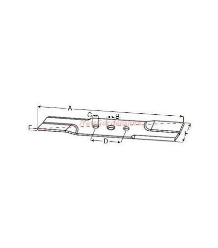 Lama per tagliaerba tosaerba rasaerba LR47 LR48 elettrico A lunghezza diagonale lama: 455mm B Ø foro centrale: 19.5mm C Ø fori di posizionamento: 10mm D interasse fori di posizionamento: 53mm E spessore lama: 3.5mm F larghezza lama: 50mm EFCO Codice: 66130045R Codice orig inale: COMPATIBILE ANCHE CON OLEOMAC G47 ELETTRICO G48 ELETTRICO AT ...