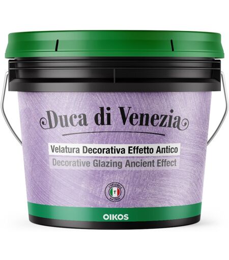 Duca di Venezia è una velatura decorativa effetto antico, ecologica, lavabile e disponibile in un'ampia gamma di colori. L'applicazione, sull'apposito fondo, risulta facile e veloce, senza problemi di giunta. Garantisce una decorazione elegante e duratura nel tempo, altamente traspirante. La cartella colori è visionabile aprendo la Scheda Tecnica Per avere informazioni più dettagliate contattare il nostro Servizio Clienti. ATTENZIONE, TINTE PURAMENTE INDICATIVE RICAVATE DA MAZZETTA OIKOS ...