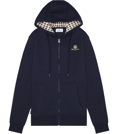 AquascutumICON SW001 11 NAVY Full zip con capp. tess.felpa ...