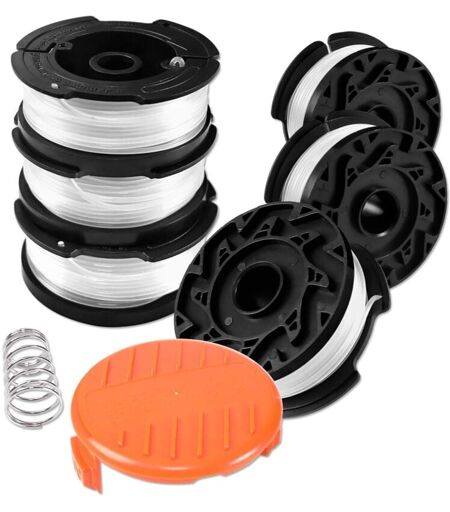 WAY Bobina di filo per decespugliatori Black and Decker, confezione da 6 bobine di filo per decespugliatori con 2 copri bobina e 2 molle