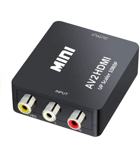 BEIJIYI Convertitore adattatore video audio Mini AV RCA CVBS a HDMI, supporto 720 1080P per fotocamera, Xbox 360, PS1, PS2, WII, N64, lettore DVD, VHS
