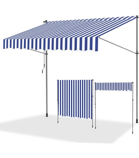RANDACO SWANEW La tenda del balcone ha allungato manualmente la manovella della tenda del balcone resistente ai raggi UV blu-bianco 1.5m