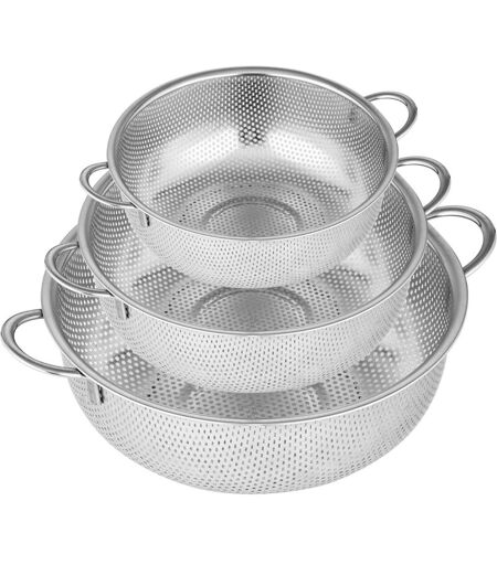 INEASICER Set di 3 colini da cucina in acciaio inox, colini pieghevoli, microforati con manici per il risciacquo, ideali per scolare pasta e verdure, filtro