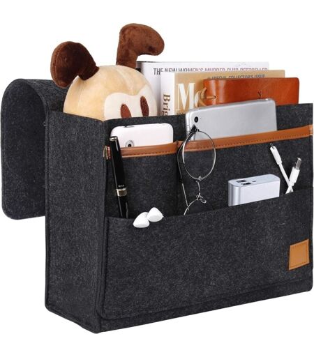 LINGHHANG Organizer per occhiali grigio scuro, borsa portaoggetti in feltro per comodino, per telefono, telecomando, diario, penna, rivista, occhiali