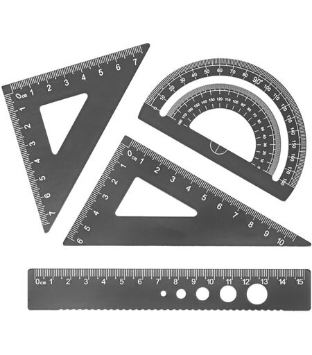 LINGHHANG (Nero) Goniometro quadrato Righello scolastico con scatola di immagazzinaggio in lega di alluminio Righelli per geometria matematica Set di