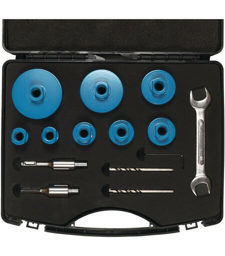 per fori di perforazione in piastrelle, granito, marmo Contenuto: Corona di perforazione diamante in Ø 20, 25, 35, 38, 42, 52, 65, 75 mm, adattatore M14/HEX, M14/SDS, chiave esagonale, trapano centratore 7x110, chiave SW19 Consegna nel caso altre caratteristiche tecniche: · Contenuto: 13 parti ...