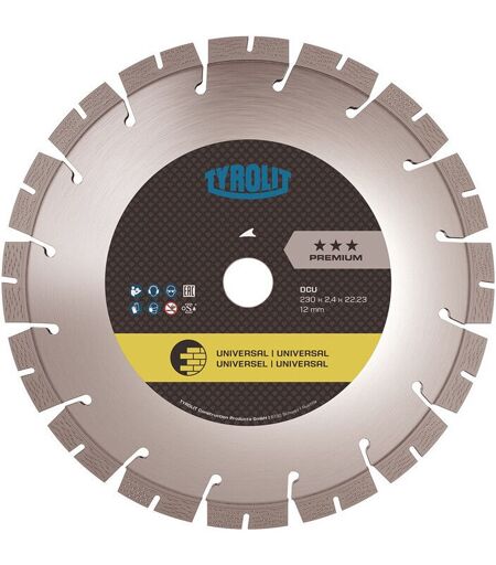 TYROLIT - Disque à tronçonner diamanté dcu Premium D.115mm alésage 22,23mm construction univ.
