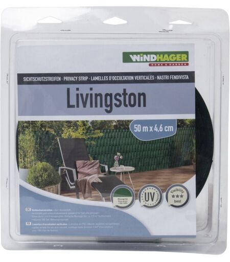 Informazioni sul prodotto: Lamella di oscuramento verticale Dimensione: 50 m x 4,6 cm Maglia: 50 mm Stecche in PVC Colore: verde Confezionato con 100 clips di fissaggio Marchio: Windhager ...
