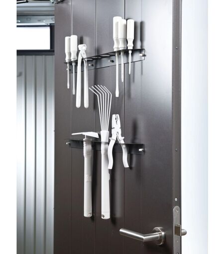 Il portautensili per la casetta per attrezzi HighLine e AvantGarde in colore grigio quarzo metallizzato, deve essere montato all`interno del battente della porta. Si possono montare al massimo 5 porta attrezzi per ogni battente. ...