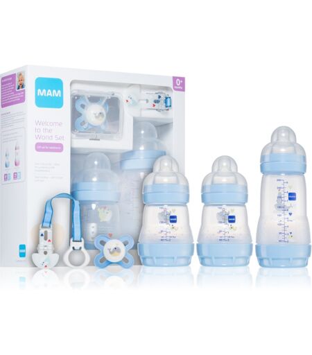 MAM Welcome to the World Blue, , Biberon per bambini, Rendi l’igiene del neonato più facile e piacevole per te o per una neomamma a cui tieni particolarmente. Il set per bambini MAM Welcome to the World Blue è pieno di prodotti essenziali che ogni mamma premurosa apprezzerà. Non si può sbagliare mai con un set così pratico. Caratteristiche: eccellente come regalo prodotti adatti ai bambini sin dalla nascita Il set contiene: biberon 2x160 ml biberon 260 ml ciuccio 1 pz fermaglio per ciuccio 1 pz ...