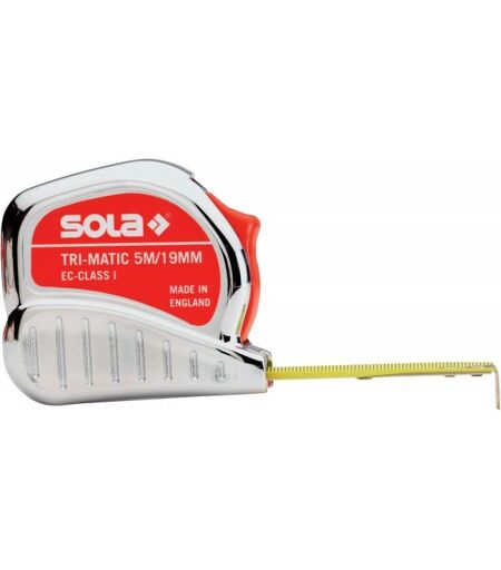 Pocket band misura TRI-MATIC Involucro di plastica, cromato Ritorno automatico del nastro con dispositivo a linea fissa Raccordi iniziali in movimento per misure interne ed esterne Fascia in acciaio con rivestimento antiriflesso Clip per cintura Divisione mm EC classe di precisione I ...