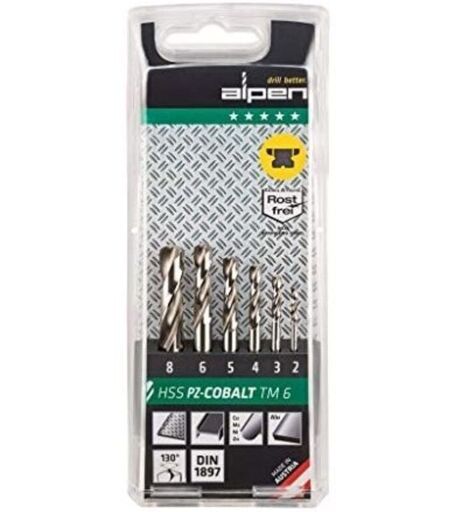 Alpen - 100906100 hss-e Kit punte a spirale da metallo 6 parti Cobalto din 1897 Alberino cilindrico 1 kit