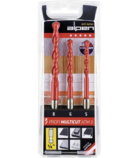 Alpen MultiCut 100803100 Acciaio Kit punte multiuso 3 parti 5 mm, 6 mm, 8 mm 1/4 (6.3 mm) 1 KIT