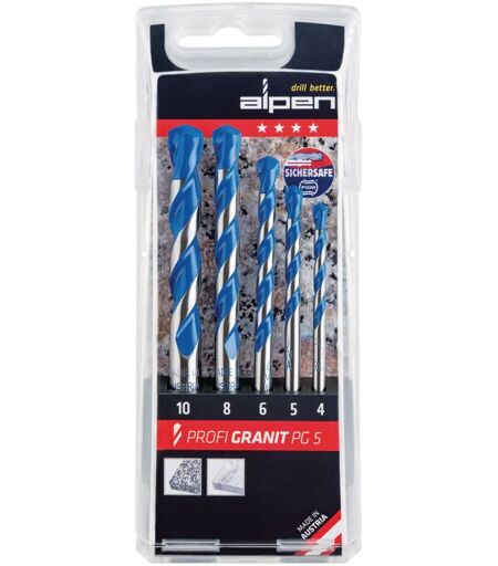 Alpen - 25700005100 Kit punte granito 5 parti 4 mm, 5 mm, 6 mm, 8 mm, 10 mm Alberino cilindrico 1 kit