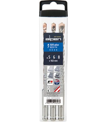 Alpen Set punte 5-6-8 mm widia per pietra 3 pz. cemento sds-plus F4