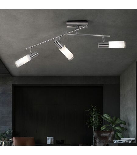 EGLO Plafoniera, plafoniera, faretto, lampada da soggiorno, spot mobile, 3 fiamme, acciaio, nichel opaco, vetro bianco, 3x E14, l 51,5 cm 27231