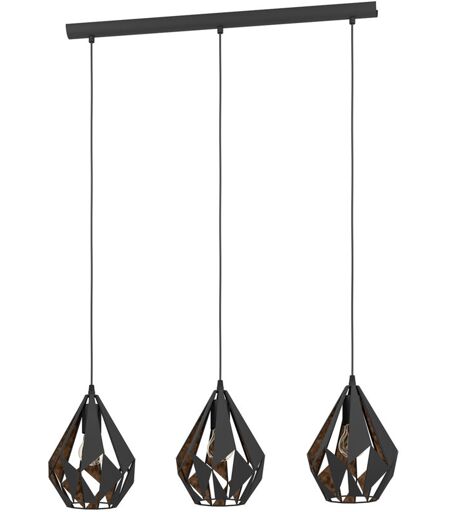 EGLO - Lampadario a Sospensione Vintage Carlton 1 Acciaio Nero Rame 3 Luci E27