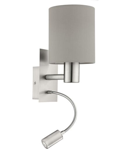 Collezione PASTERI ELEGANZA NORDICA PER LA TUA CASA L'applique PASTERI è composta da un corpo in metallo in nichel opaco e da un paralume cilindrico di stoffa color tortora.. La lampada dispone anche di una luce da lettura mobile e consente un'illuminazione mirata. È possibile accendere e spegnere la luce attraverso un interruttore a levetta presente sul corpo della lampada. Con il suo design semplice, è adatta a qualsiasi tendenza di arredamento o a qualunque ambiente che sia la camera da letto o il soggiorno. La lampadina, prevista con attacco E27, non è inclusa. ...