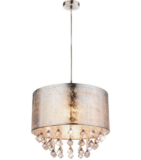 Globo Lampada da soffitto a sospensione in cristallo con illuminazione a pendolo in tessuto per camera da letto argento 15188H3