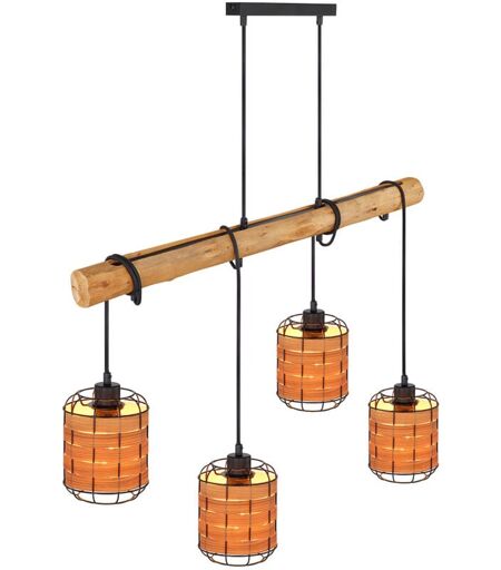 Globo Lampada a sospensione Lampada da soggiorno con paralume a 4 luci, effetto legno, regolabile, metallo plastica, marrone nero, 4x prese E27, LxLxA