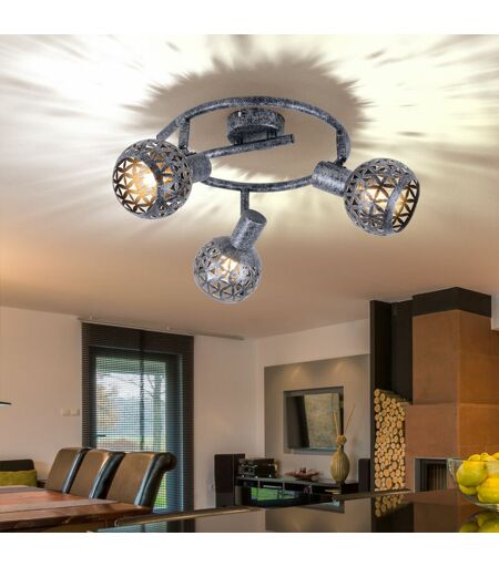 Globo Plafoniera faretto faretto soggiorno lampada sala da pranzo, metallo grigio antico, 3 punti luce mobili, E14, d 26 cm
