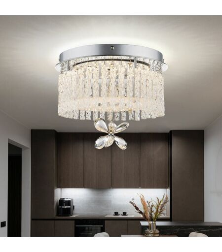 Descrizione Questa grande lampada da soffitto rotonda in cromo è caratterizzata da un design elegante e da una lavorazione di alta qualità. Per la base di questo prodotto è stato scelto un colore cromato e le aste di vetro pendenti e un grande cristallo a fiore completano l'aspetto complessivo. Un ulteriore punto a favore di questa lampada con un diametro di 28 cm è la sua efficienza energetica. Il colore della luce di 4000K è percepito come una piacevole tonalità tra il bianco caldo e il bianco neutro. Questo articolo può essere combinato molto bene con altri prodotti della stessa serie. La fornitura comprende una sorgente luminosa LED di alta qualità. Dettagli della luce • Tipo di lampada: Plafoniera • Materiale: Cromo • Paralume: Cristalli trasparenti, aste di vetro • Forma: rotonda• Grado di protezione: IP20• Altezza x diametro in cm: 22x28 • Sorgente luminosa: 1x LED • Lampadina inclusa: sì • Potenza della lampadina: 1x 12 Watt• Flusso luminoso totale: 840 lumen • Colore della ...