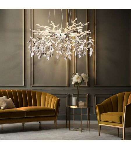 Descrizione Questa lampada a sospensione è realizzata in metallo e cristalli di vetro. Questa lampada artistica, che si estende per 120 cm nella stanza, è dotata di otto prese G9 (con un massimo di 8 watt), che consentono la libera scelta delle fonti luminose. Questa lampada con cristalli di vetro e rami si inserisce abilmente nelle tue quattro pareti. Le lampadine non sono comprese nella fornitura. Lampada dettagli • Tipo di lampada: lampada a sospensione • Materiale: cristalli di vetro, metallo • Colore: trasparente, cromato, fumè • Grado di protezione: IP20 • Classe di protezione: 1 • 8 fiamme • Diametro x altezza in cm: 61 x 120 • Prese: 8x G9 • Lampadine incluse: No • Potenza lampada: 8x massimo 8 watt • Alimentazione: 230V, 50Hz ...
