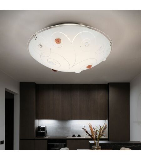 Descrizione Lampada da soffitto classica: la soluzione ideale per quasi ogni stanza e stile di vita! Non puoi sbagliare con questa luce. Realizzata in vetro cromato e opalino di alta qualità, questa lampada colpisce soprattutto per la sua applicabilità universale. Che sia in cucina, in corridoio, in soggiorno o in bagno, grazie alla sua forma e linea classica, questa plafoniera è ovunque la soluzione ideale. Una sorgente luminosa LED da 8 Watt di alta qualità è già integrata. Lampada dettagli • Tipo di lampada: plafoniera • Materiale: cromo, vetro • Paralume: Opale con linee decorative e pietre decorative• Grado di protezione: IP20 • Diametro in cm: 25 • Sorgente luminosa: 1x LED• Lampadine incluse: sì• Potenza lampada: 1x 8 watt • Colore della luce: bianco caldo• Lampadina flusso luminoso: 640 lumen • Alimentazione: 230V, 50-60Hz Dettagli lampadine • Tipo di lampadina: scheda LED • Consumo energetico: 8 kWh/1000h • Consumo energetico nominale: 8 watt • Alimentazione: 230V, 50-60Hz • ...